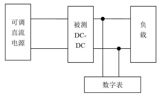 DC-DC模塊因?yàn)槠湫矢?,體積小廣泛應(yīng)用于各種電子產(chǎn)品中,在其研發(fā)、生產(chǎn)和檢驗(yàn)驗(yàn)收階段都需要測(cè)試其主要的技術(shù)指標(biāo),如源效應(yīng),負(fù)載效應(yīng)和準(zhǔn)確度等。在測(cè)試時(shí),其需要一個(gè)可調(diào)的直流電源提供激勵(lì)。以源效應(yīng)為例,其測(cè)試示意圖如圖1所示。